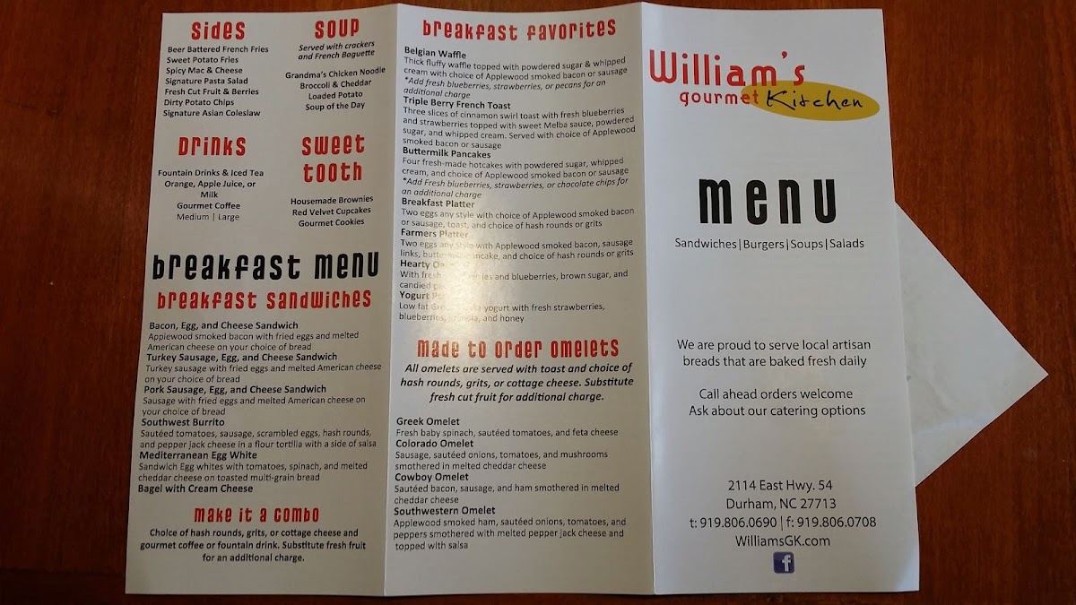 Welcome to William's Gourmet Kitchen, your destination for a delightful culinary experience in Durham, NC. This charming eatery, located at 2114 NC-54, is celebrated for its cozy ambiance and exceptional service. With a team that genuinely cares, diners are treated to not just great food, but also an inviting atmosphere where staff go the extra mile to ensure satisfaction.